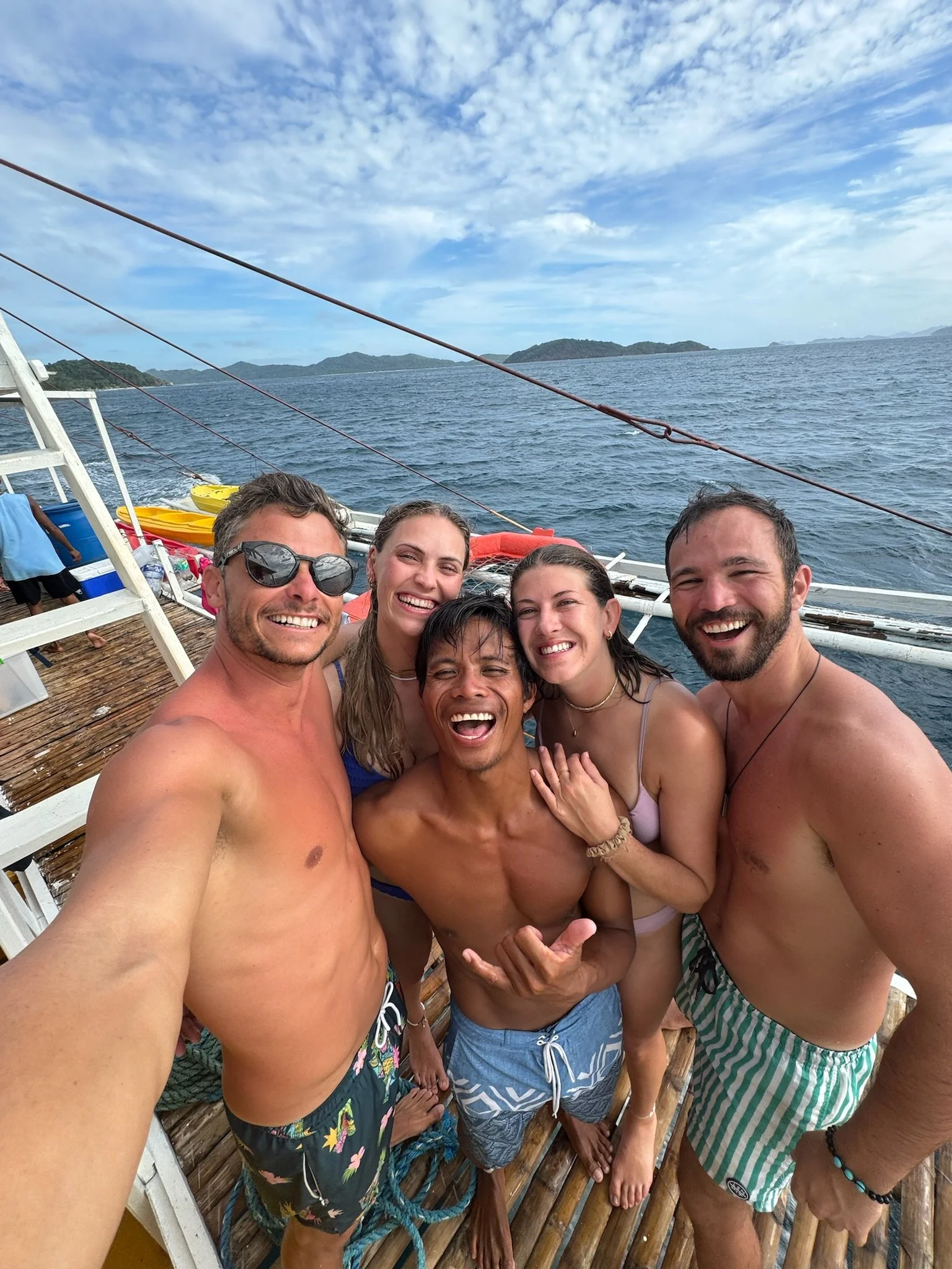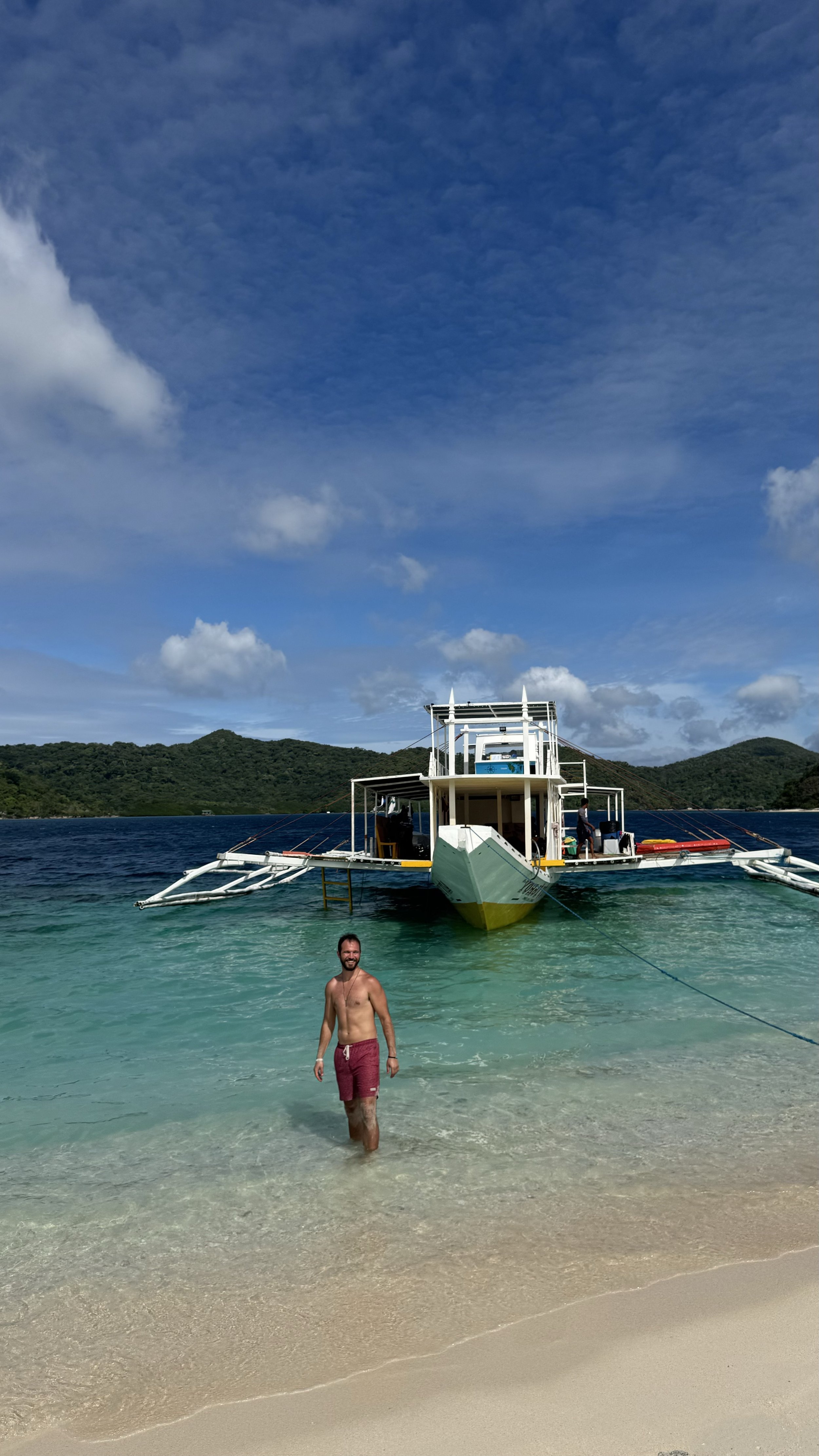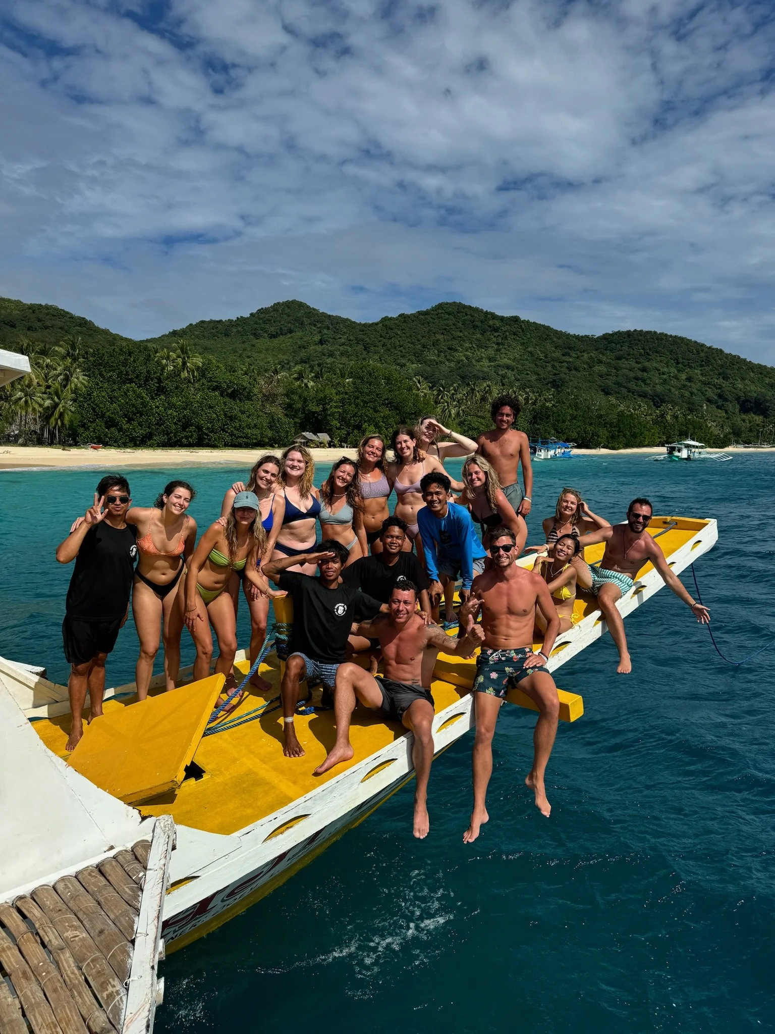 The Castaway boat itself is a long, traditional Filipino trireme-style vessel that sails straight into the open sea, hopping between remote beaches and islands. The rhythm of the trip is perfect: sail for 30 minutes, stop to snorkel, eat a delicious meal, then do it again. Every day brought new views, new beaches, and new friends.